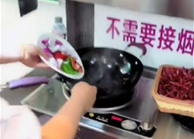 小型無(wú)煙管油煙機(jī)炸辣椒演示